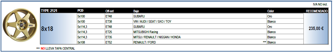 El modelo SL2121, fabricado en 8x18 para los anclajes de 5x100, 5x108, 5x112 y 5x114.3 es el diseño que puso de moda SUBARU en sus primeros WRC, y que después utilizaron los WRC Skoda Octavia, Toyota Corolla y Seat Córdoba, y diversos Maxi como el Peugeot 306 y el Renault Megane. Ver más abajo ANCLAJES, MEDIDAS y PRECIOS:
