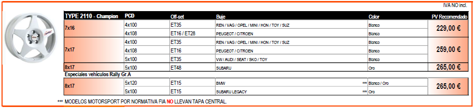 La SL 2110 es uno de los modelos clásicos más identificado con Speedline. Se fabrica en 7x16 y 7x17 con anclajes 4x100 y 4x108. Actualmente también disponemos en 8x17, ET15 para BMW en colores blanco y dorado y 8x17, ET15 para SUBARU en color dorado. Ver más abajo ANCLAJES, MEDIDAS y PRECIOS: