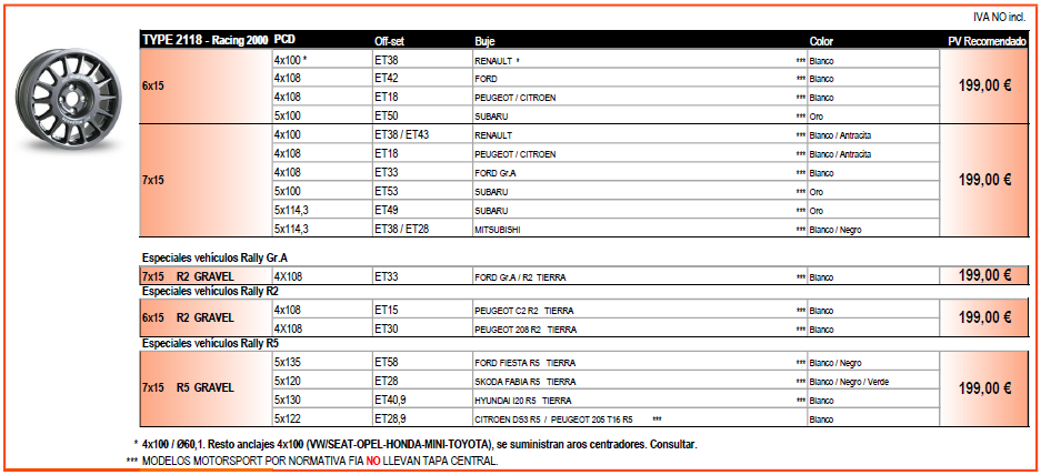 Llanta muy robusta diseñada para uso en rally de tierra. Utilizada por equipos profesionales con aplicaciones principalmente para Renault, Subaru, Mitsubishi, PSA... Ver más abajo ANCLAJES, MEDIDAS y PRECIOS:
